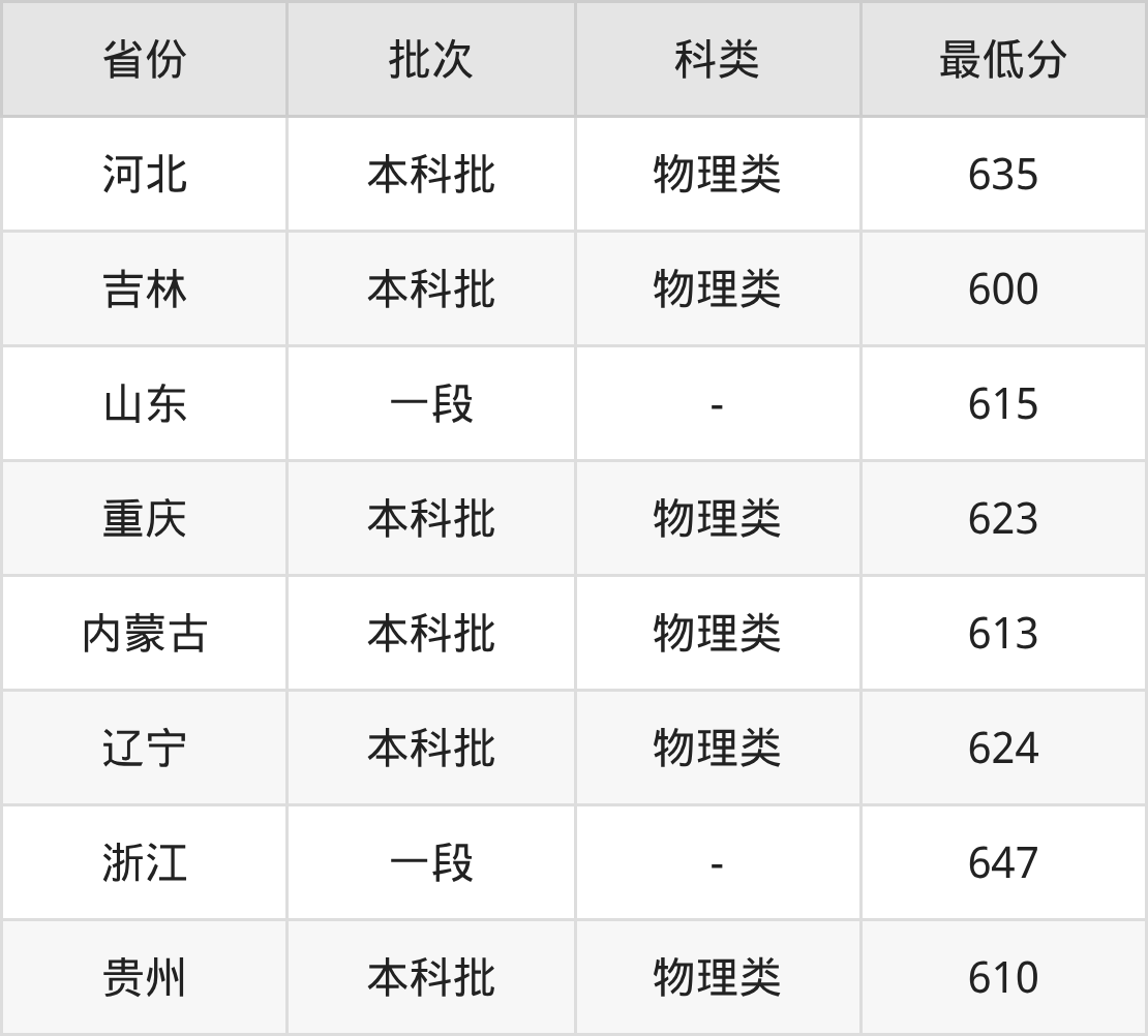 | 批次 | 最低分 | 位次 |