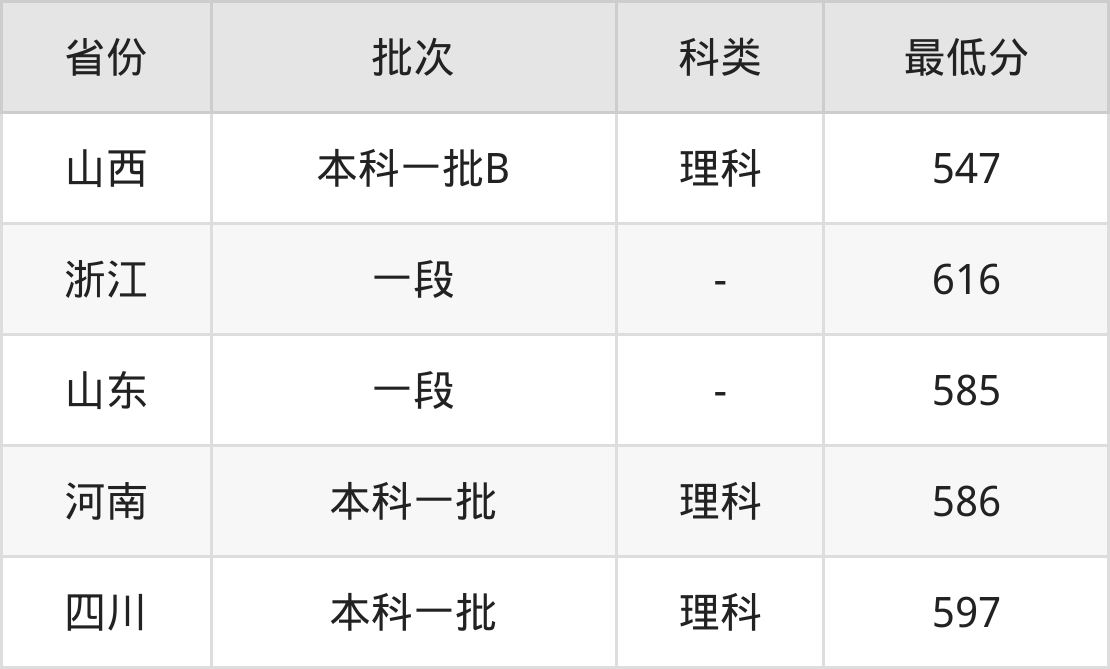 | 批次 | 最低分 | 位次 |