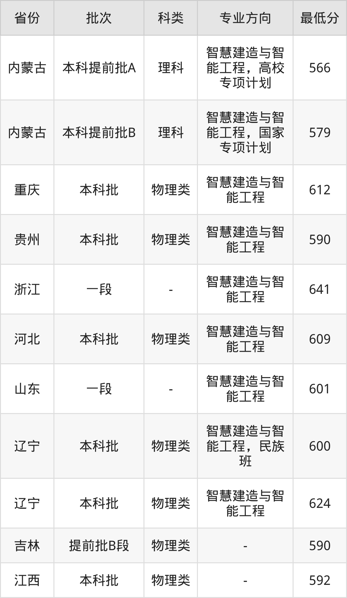 物理类600分(智慧建造与智能工程,民族班、位次14612名),物理类624分(智慧建造与智能工程、位次8466名);
