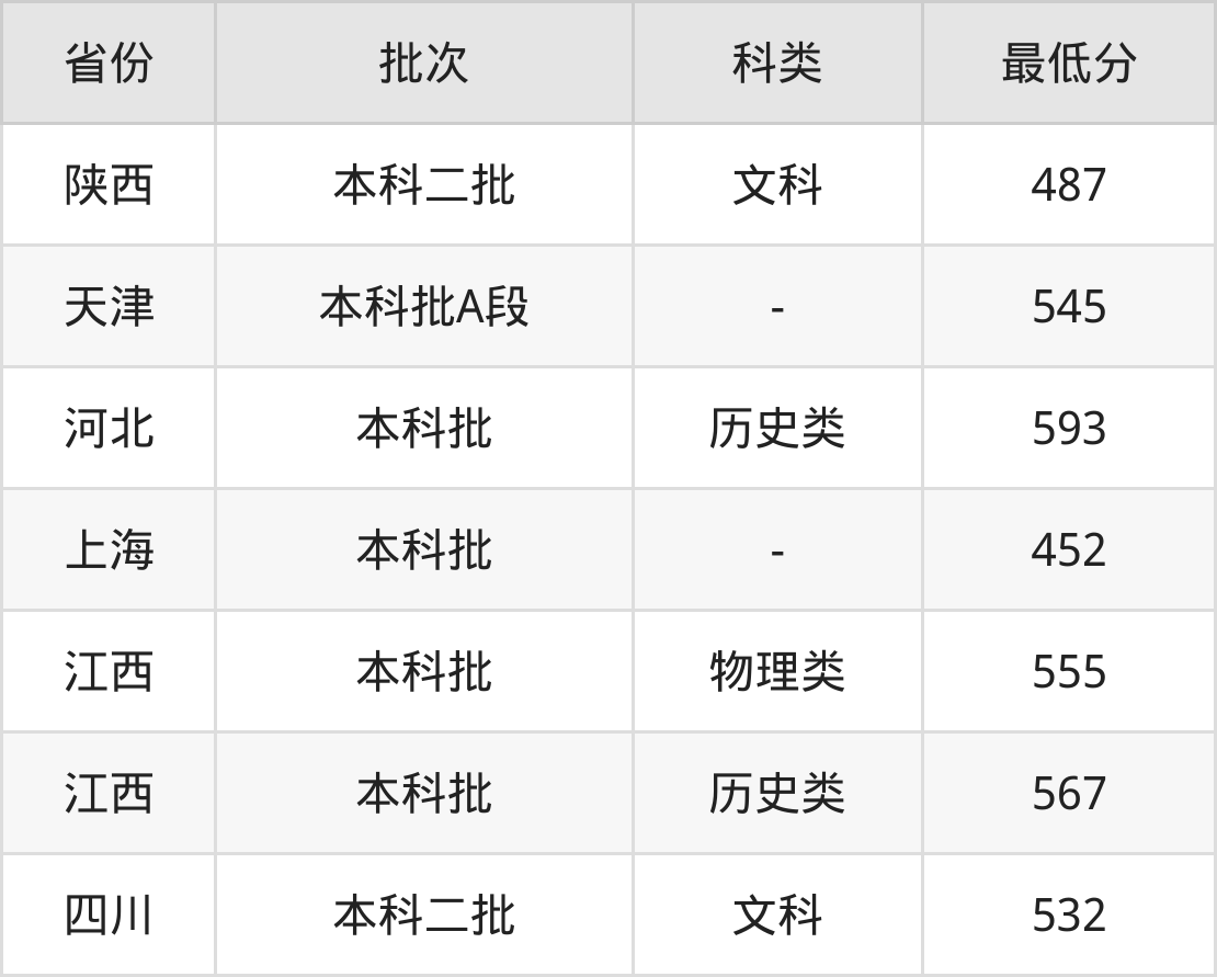 | 批次 | 科类 | 最低分 | 位次 |