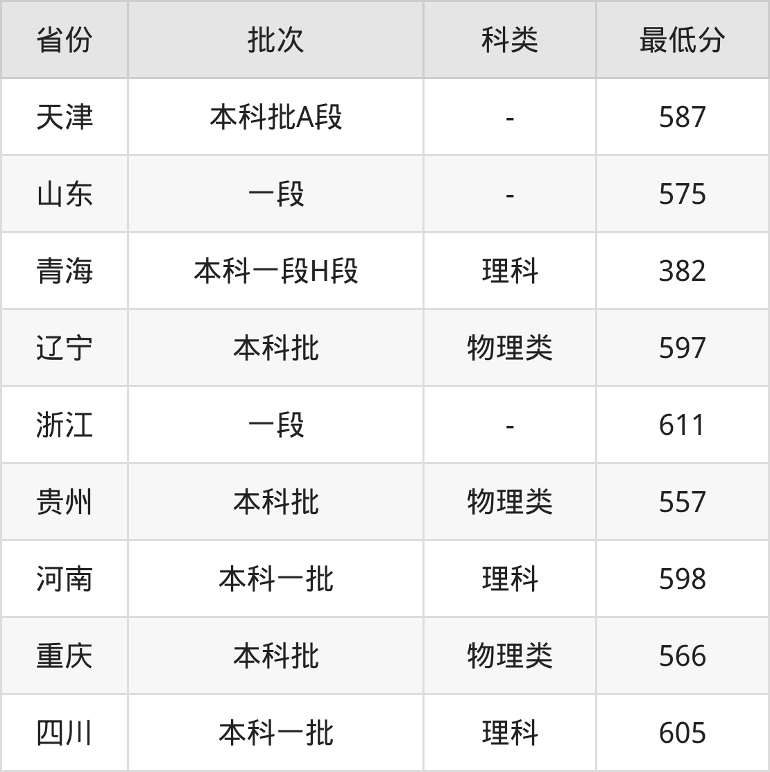 2024年重庆医科大学智能医学工程专业在市外招生分数线各不相同,具体如下: