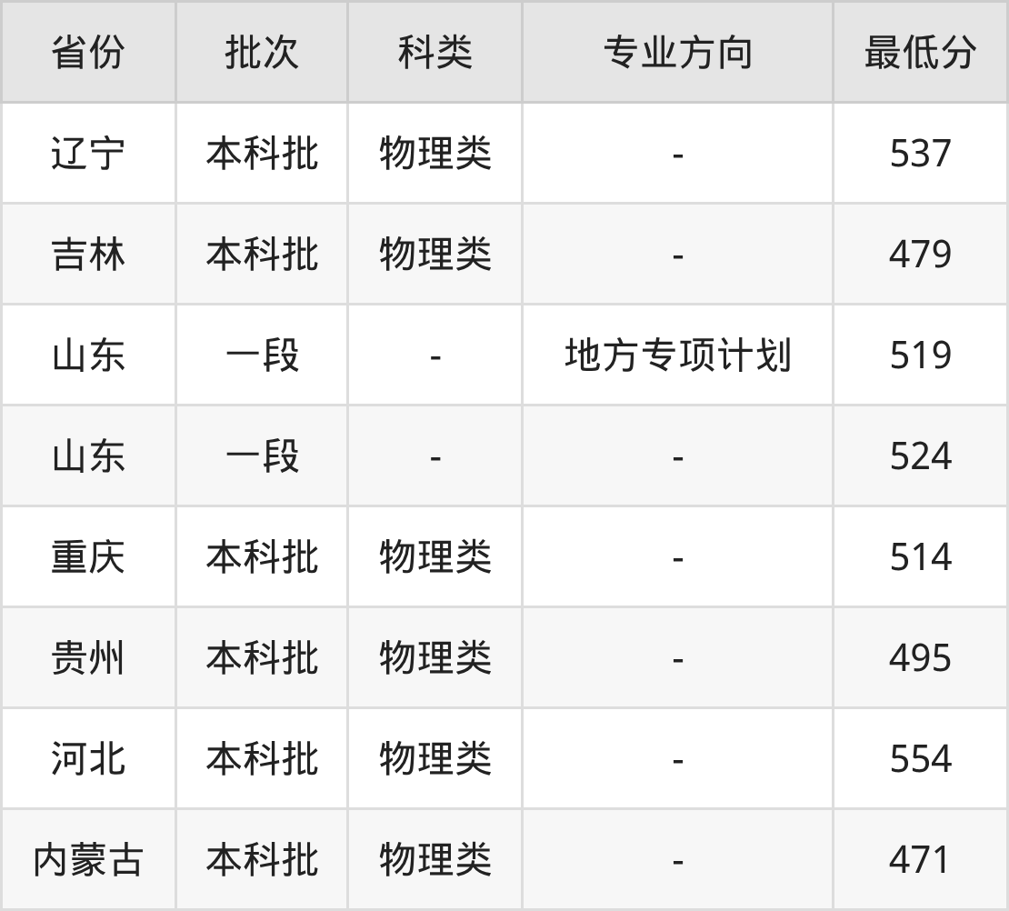| 批次 | 专业方向 | 最低分 | 位次 |