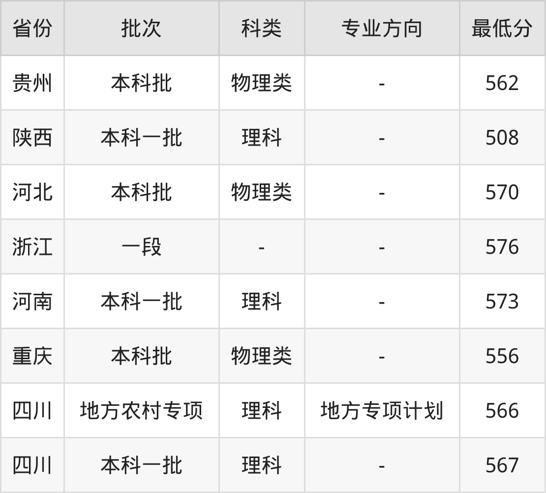 | 批次 | 科类 | 专业方向 | 最低分 | 位次 |
