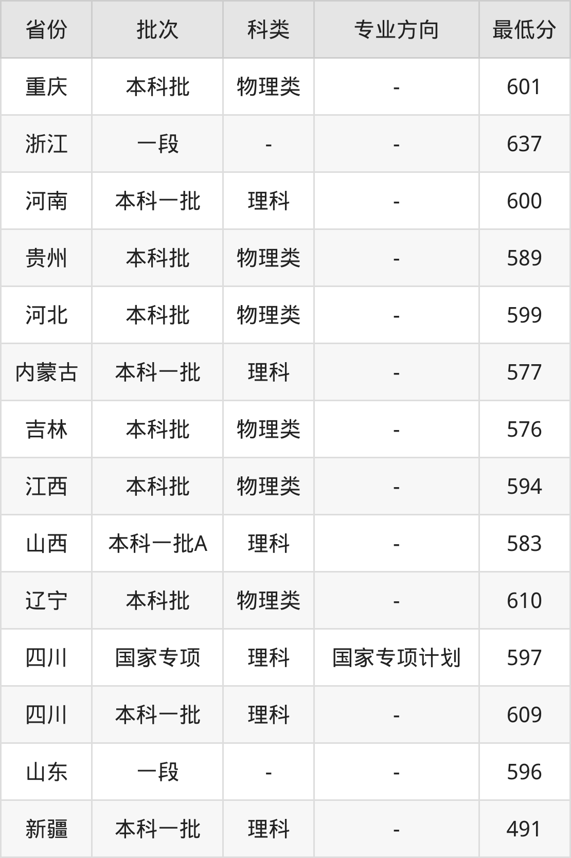 理科597分(国家专项计划、位次28248名),理科609分(位次20827名);