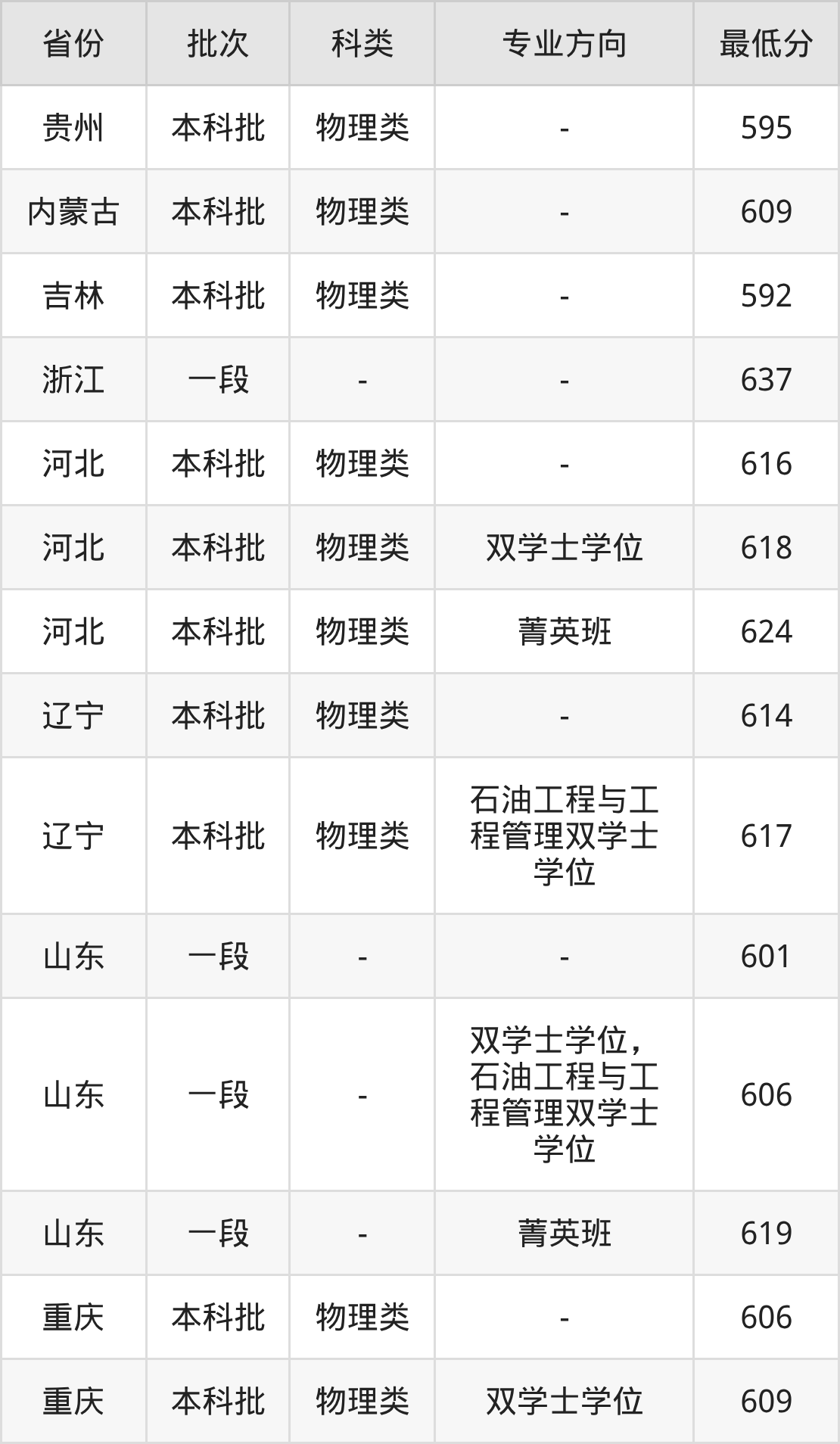 物理类614分(位次9443名),物理类617分(石油工程与工程管理双学士学位、位次8681名);
