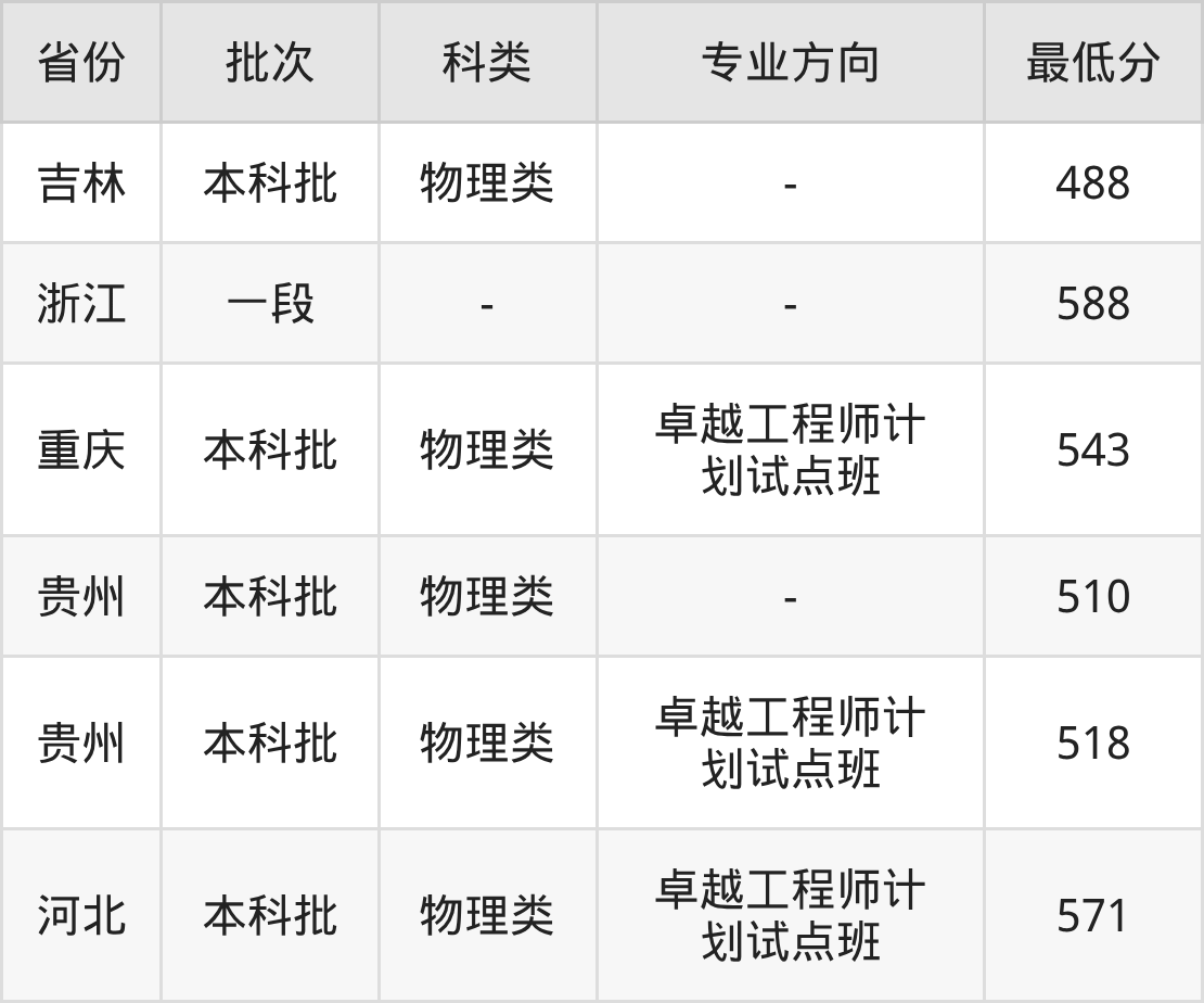 物理类510分(位次45109名),物理类518分(卓越工程师计划试点班、位次40041名);