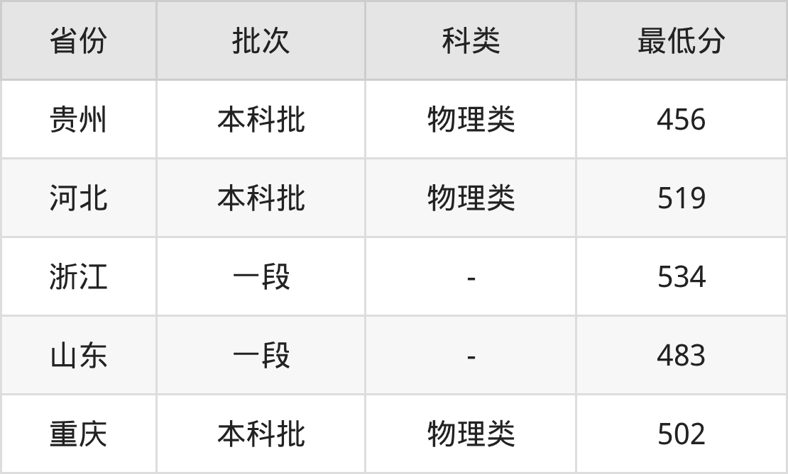 宁波工程学院土木工程专业录取分数线2025各省汇总显示,省内招生最低分为534分,省外招生最低分为贵州456分、河北519分、山东483分、重庆502分。更多专业分数详情、选科要求、专业简介等均可在正文查阅。