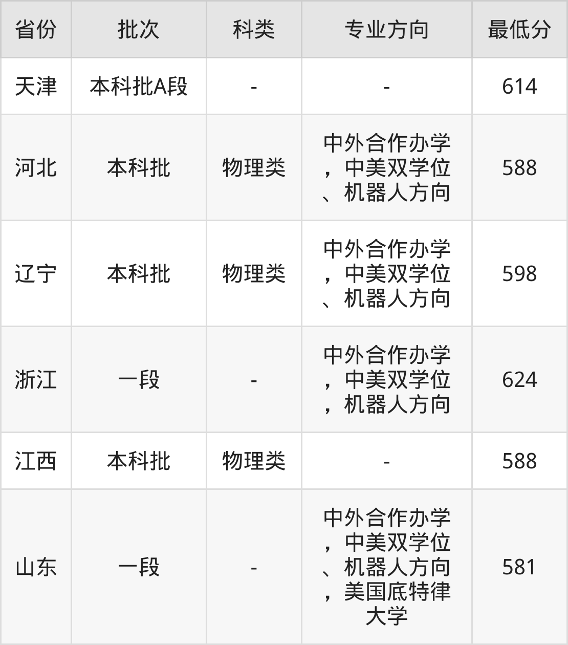 624分(中外合作办学,中美双学位,机器人方向、位次29718名)。