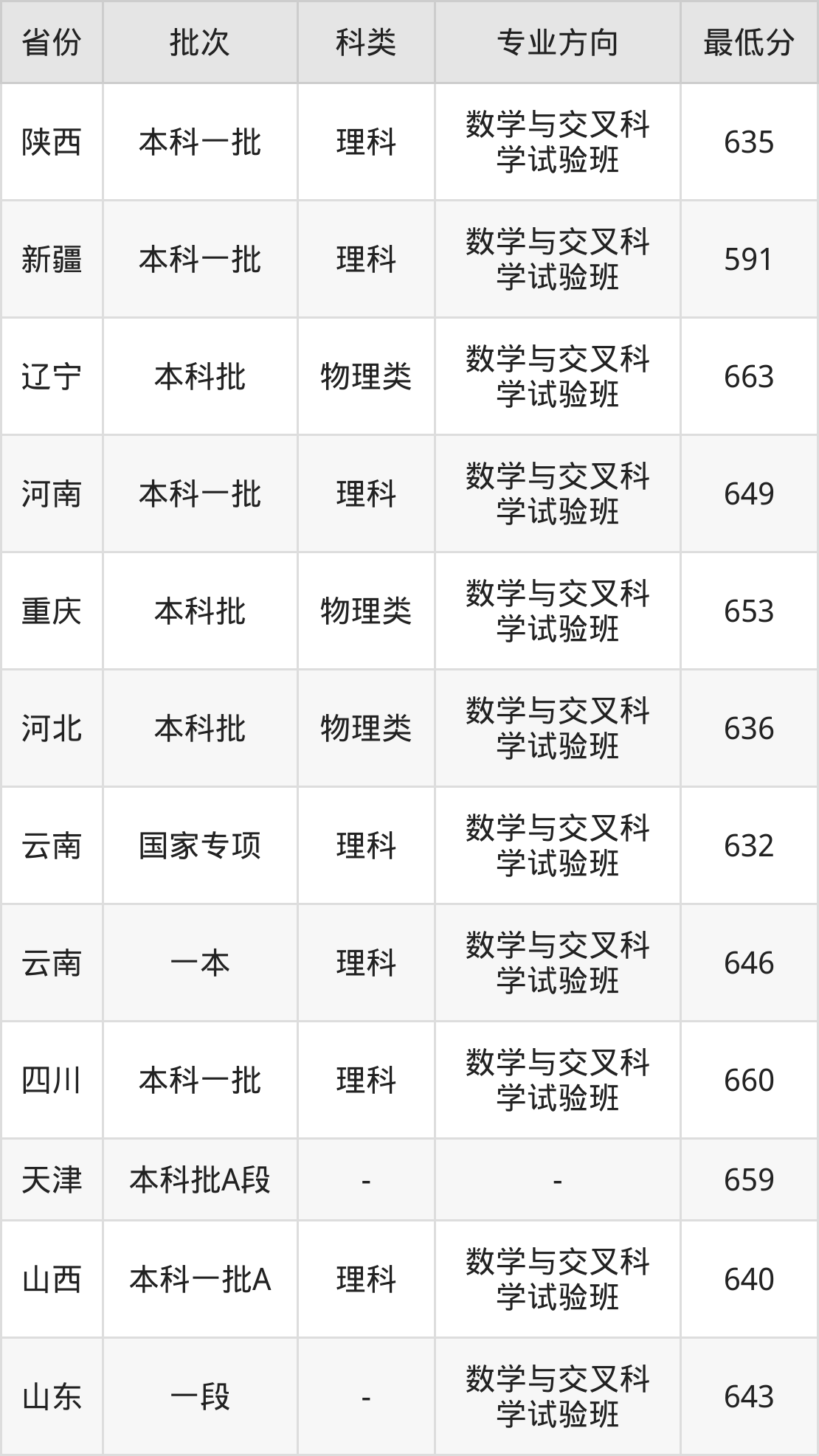 | 本科一批 | 理科 | 数学与交叉科 学试验班 | 635 | 3484 |