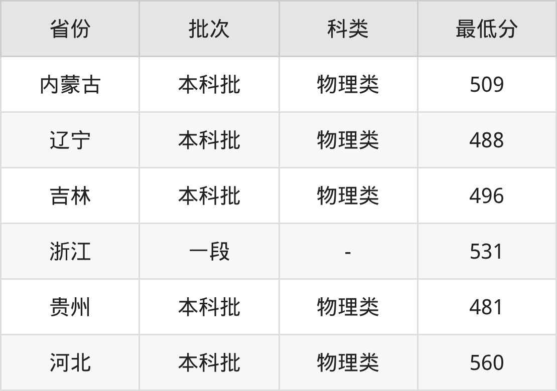 | 批次 | 科类 | 最低分 | 位次 |