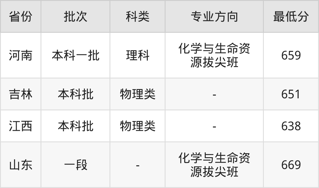 理科659分(化学与生命资源拔尖班、位次2405名);