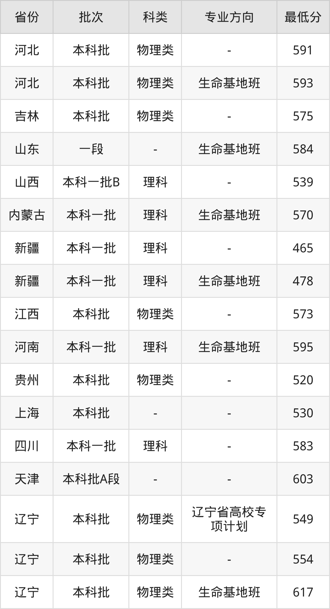 | 本科批 | 物理类 | 生命基地班 | 617 | 10100 |