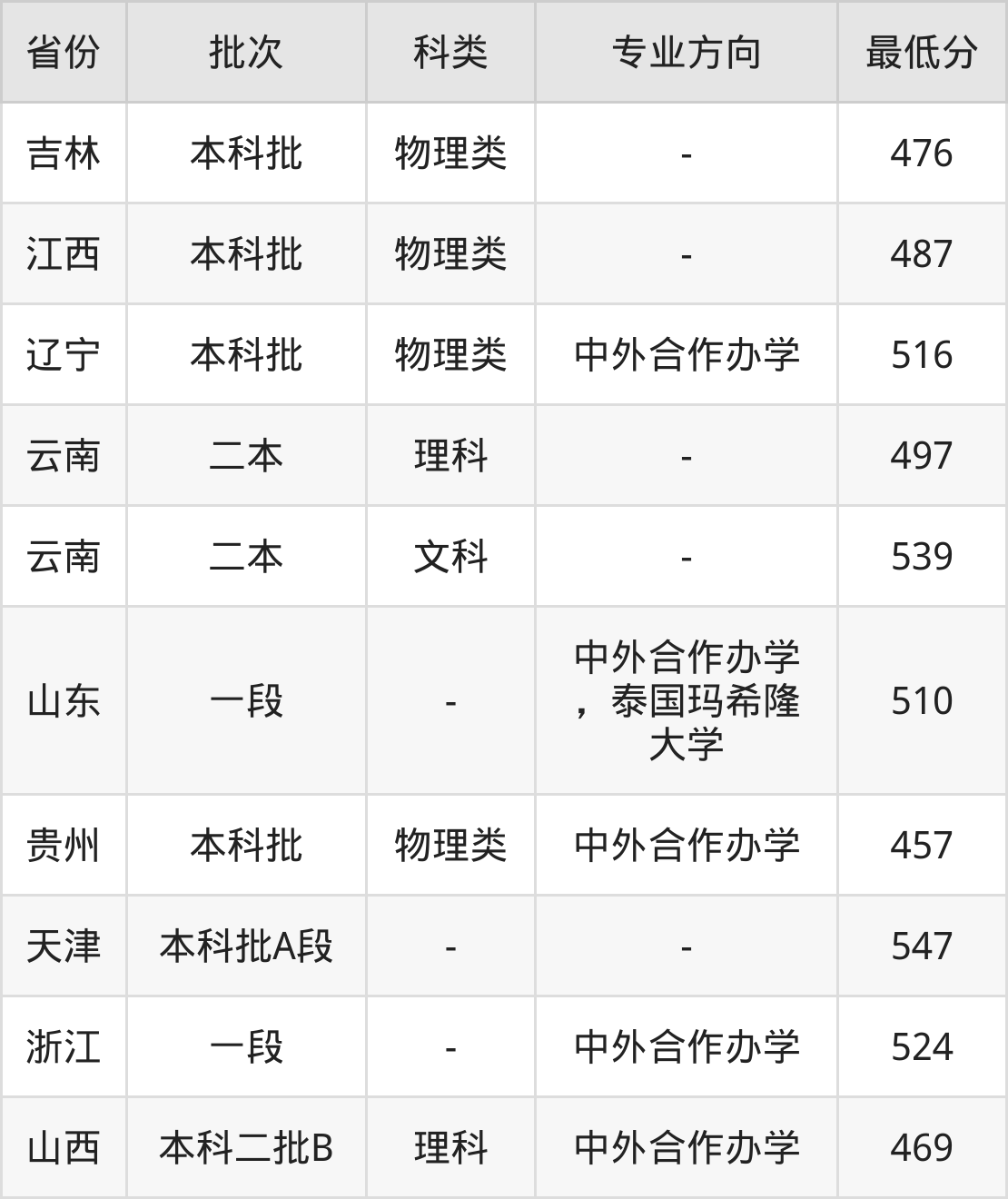 510分(中外合作办学,泰国玛希隆大学、位次154996名);