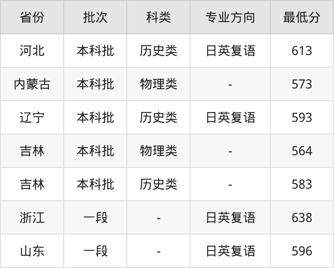 北京林业大学日语专业录取分数线2025各省汇总显示,市外招生最低分为河北613分、内蒙古573分、辽宁593分、吉林564分等。更多专业分数详情、选科要求、专业简介等均可在正文查阅。