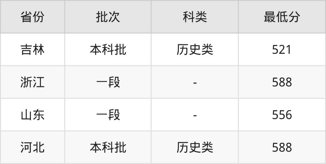 | 批次 | 最低分 | 位次 |