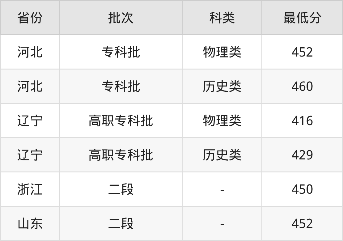 青岛港湾职业技术学院港口与航运管理专业录取分数线2025各省汇总显示,省内招生最低分为452分,省外招生最低分为辽宁416分、浙江450分、河北452分。更多专业分数详情、选科要求、专业简介等均可在正文查阅。