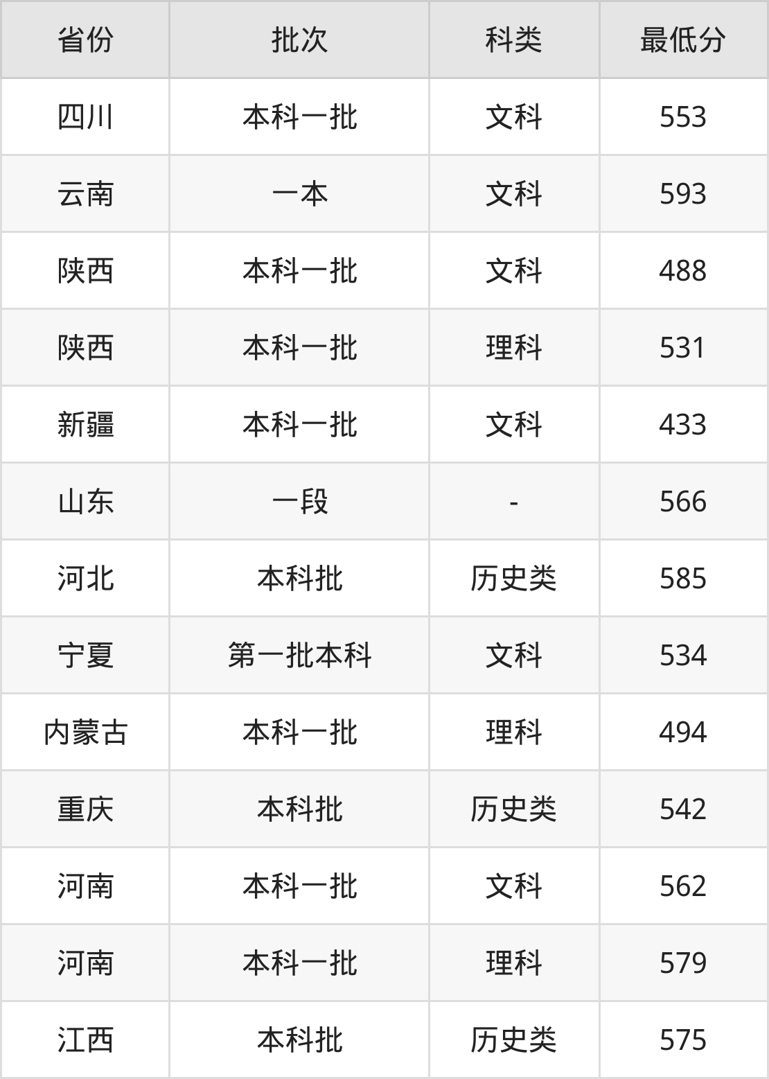 2024年长沙理工大学英语专业在省外招生分数线各不相同,具体如下: