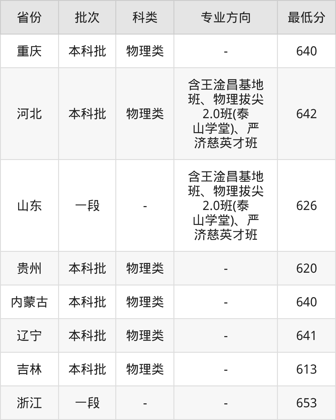 物理类642分(含王淦昌基地班、物理拔尖2.0班(泰山学堂)、严济慈英才班、位次5268名);