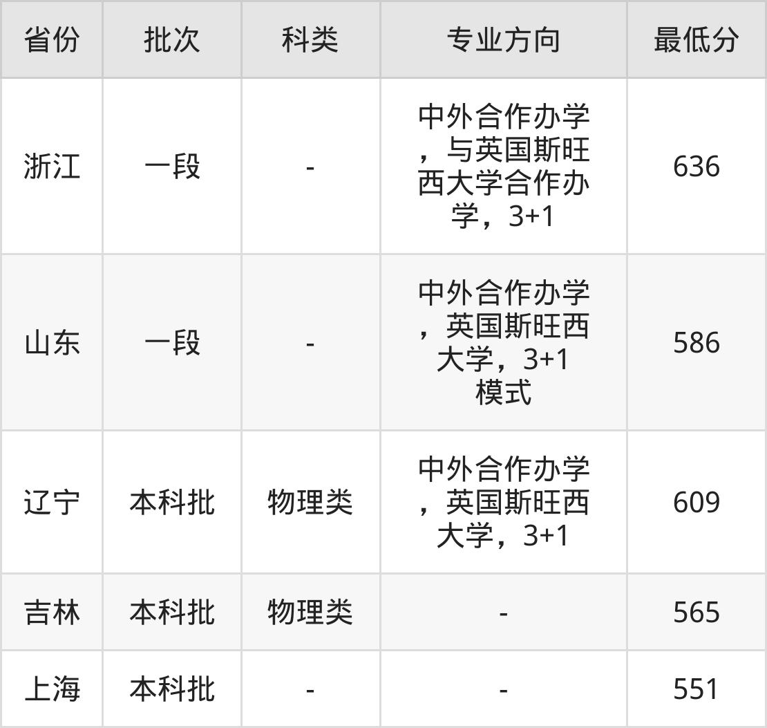 636分(中外合作办学,与英国斯旺西大学合作办学,3+1、位次20741名);
