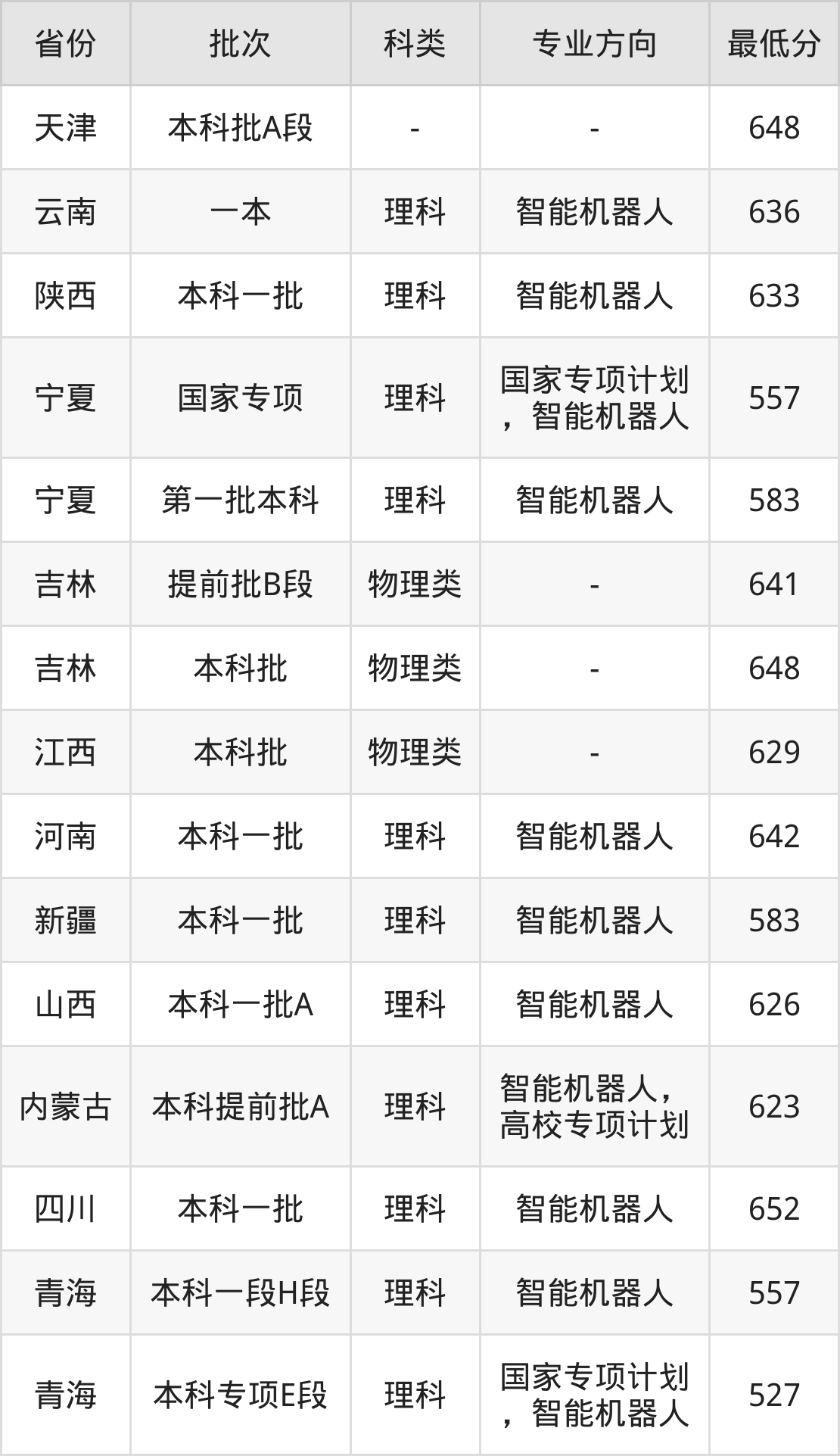 理科557分(国家专项计划,智能机器人、位次1552名),理科583分(智能机器人、位次766名);