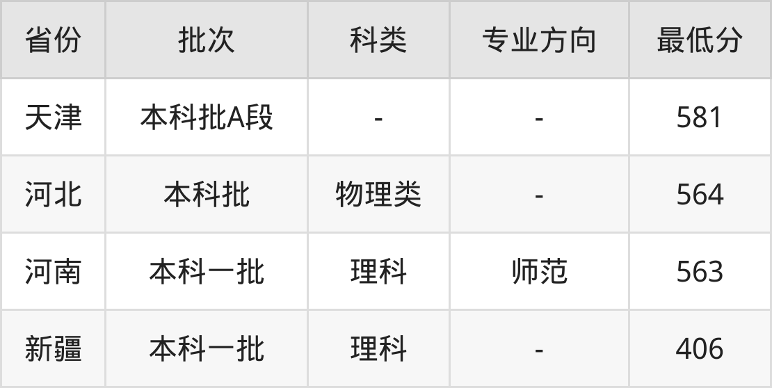 2024年石河子大学化学专业在维吾尔自治区外招生分数线各不相同,具体如下: