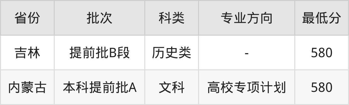 2、吉林省(提前批B段)