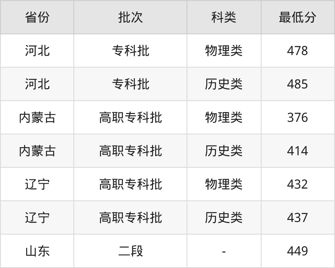 天津现代职业技术学院食品生物技术专业录取分数线2025各省汇总显示,市外招生最低分为河北478分、内蒙古376分、辽宁432分、山东449分。更多专业分数详情、选科要求、专业简介等均可在正文查阅。