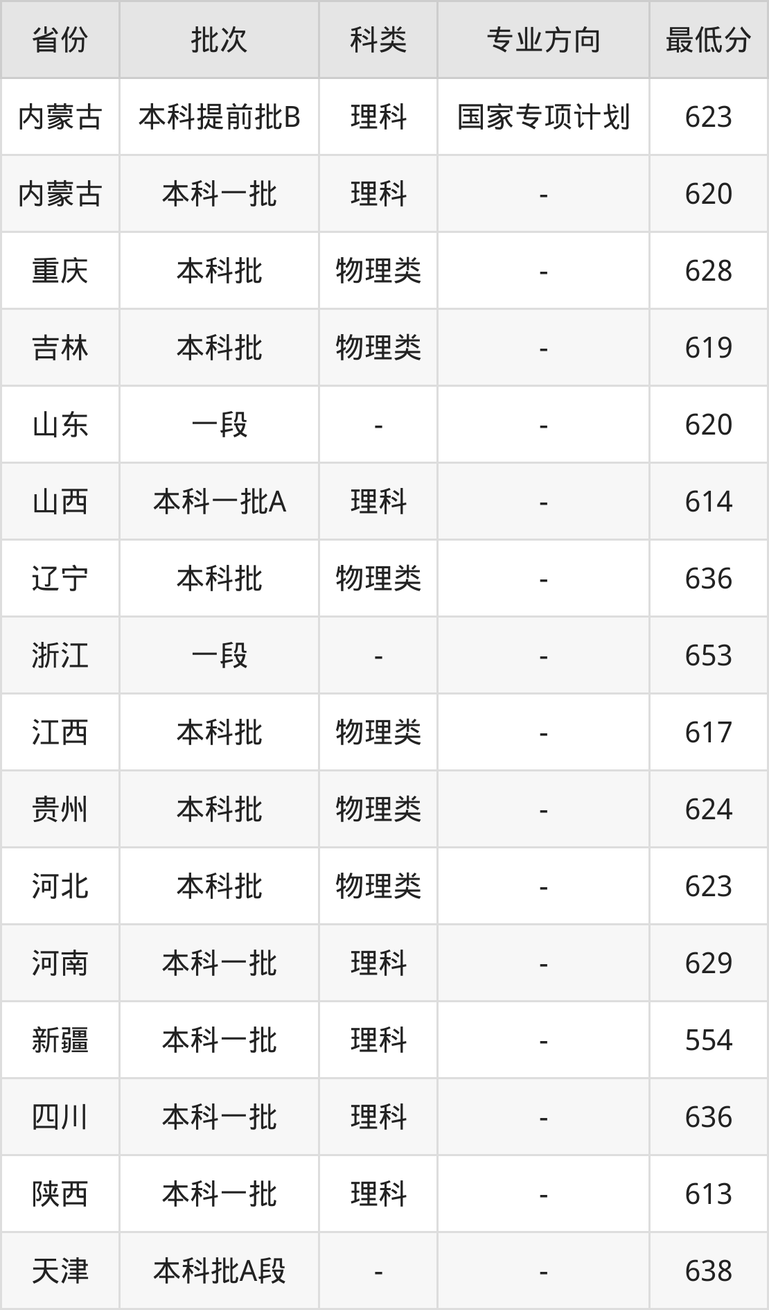 理科623分(国家专项计划、位次2220名),理科620分(位次2449名);