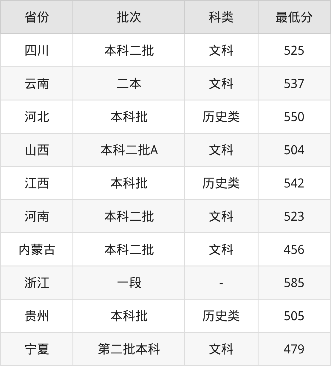 湖北经济学院网络与新媒体专业录取分数线2024各省汇总显示,省外招生最低分为浙江585分、贵州505分、宁夏479分、云南537分等。更多专业分数详情、选科要求、专业简介等均可在正文查阅。