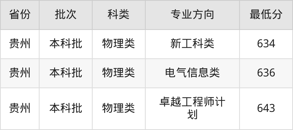 | 本科批 | 物理类 | 电气信息类 | 634 | 4805 |