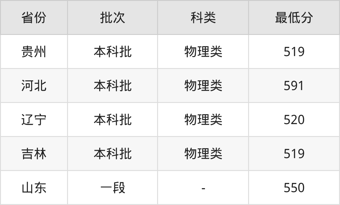 | 批次 | 科类 | 最低分 | 位次 |