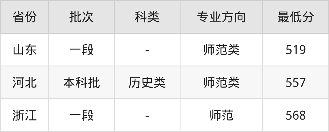 宝鸡文理学院历史学专业录取分数线2025各省汇总显示,省外招生最低分为山东519分、河北557分、浙江568分。更多专业分数详情、选科要求、专业简介等均可在正文查阅。