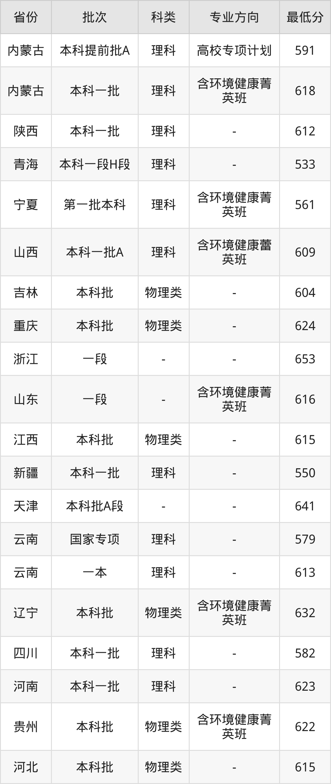 物理类622分(含环境健康菁英班、位次4390名);