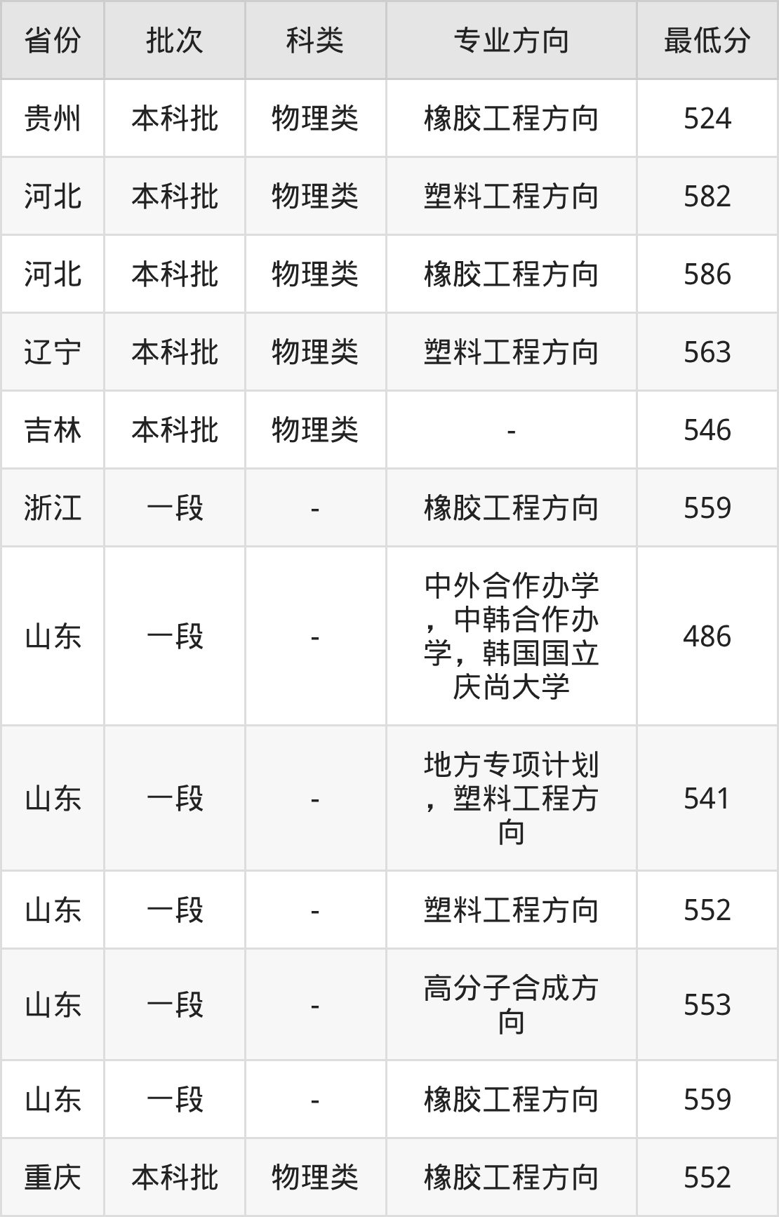 物理类582分(塑料工程方向、位次42923名),物理类586分(橡胶工程方向、位次38943名);