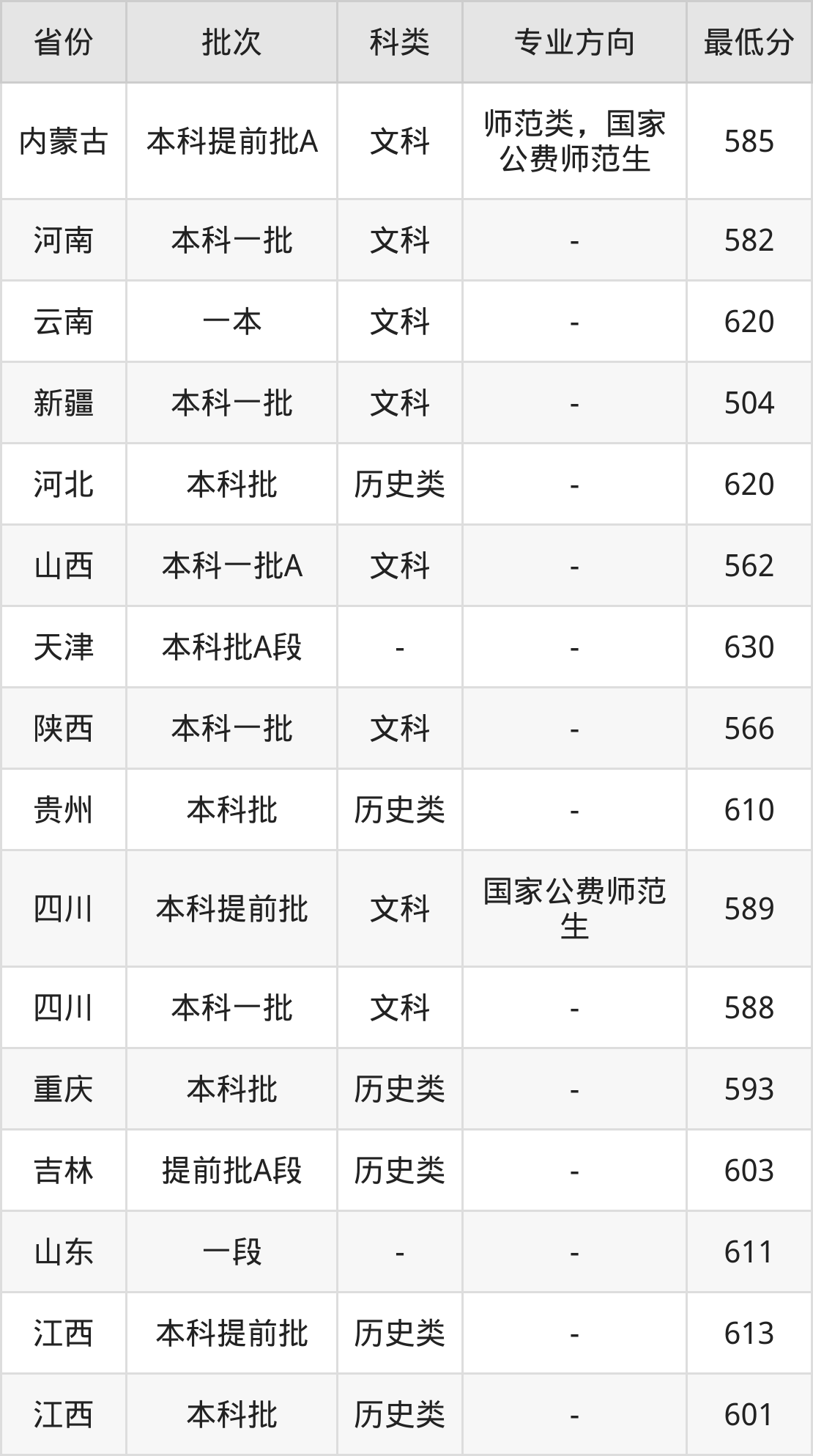 | 批次 | 科类 | 最低分 | 位次 |