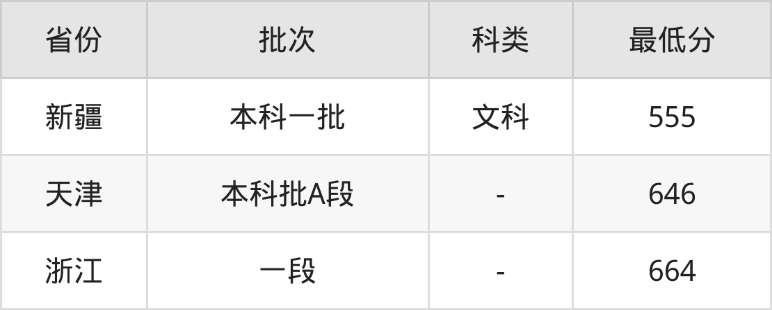 | 批次 | 最低分 | 位次 |
