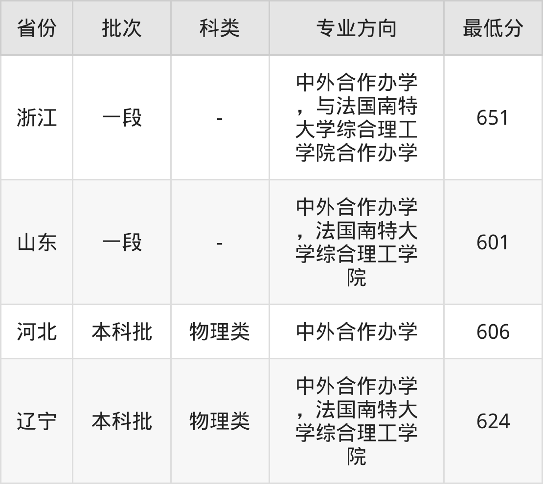 物理类624分(中外合作办学,法国南特大学综合理工学院、位次8466名);