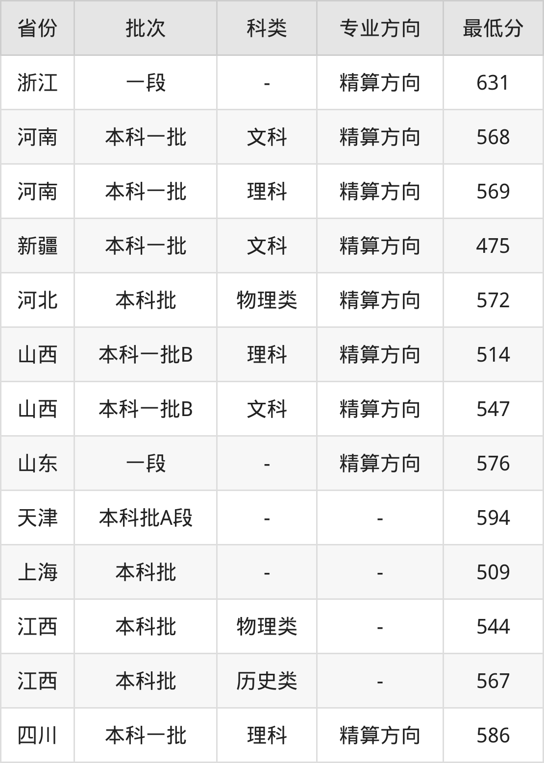 文科568分(精算方向、位次7217名),理科569分(精算方向、位次50642名);