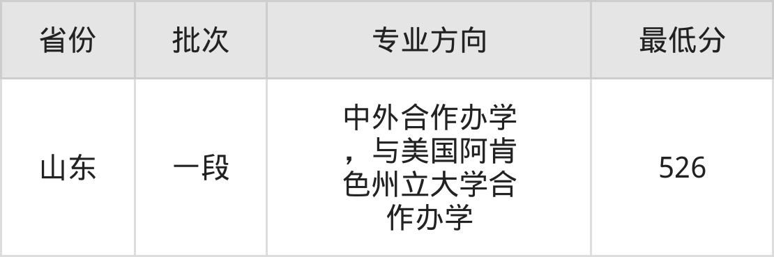 526分(中外合作办学,与美国阿肯色州立大学合作办学、位次118882名)。