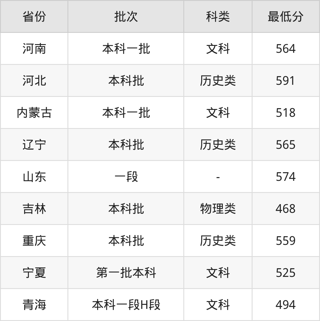 2024年南华大学法学专业在省外招生分数线各不相同,具体如下: