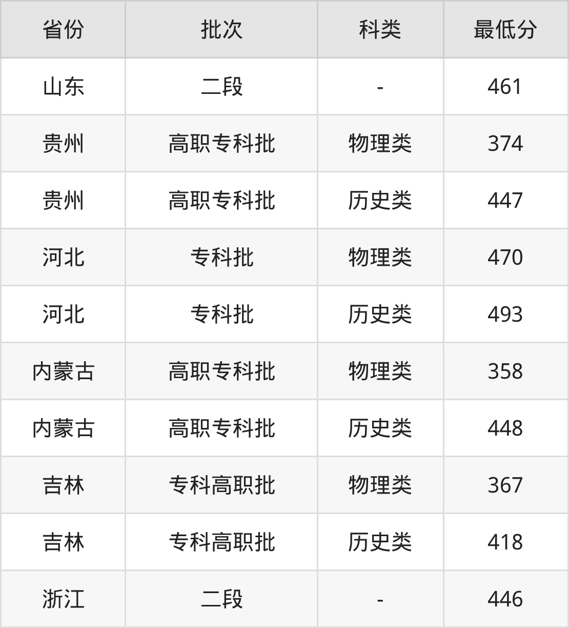 1、吉林省(专科高职批)