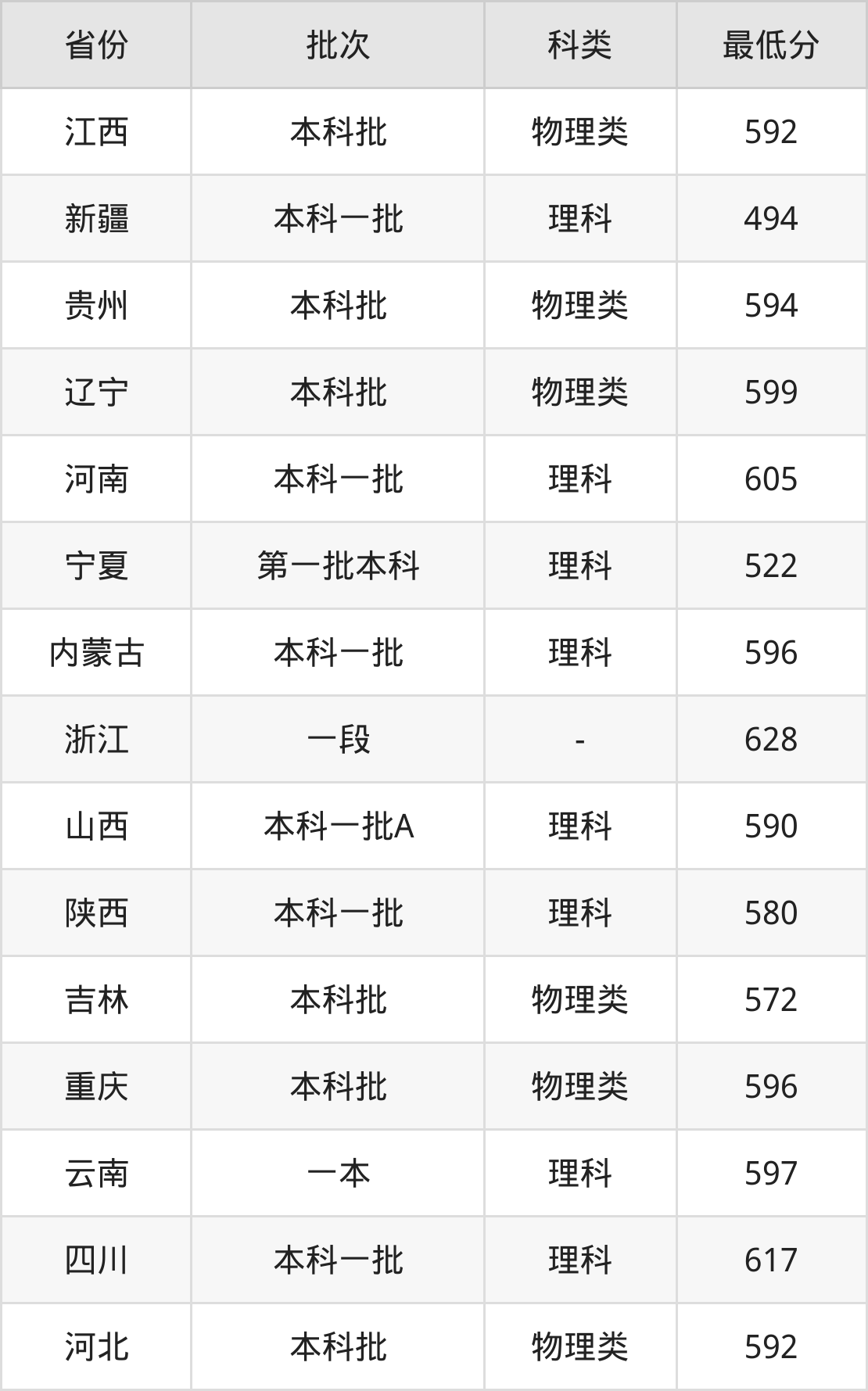 | 本科一批 | 理科 | 605 | 20456 |