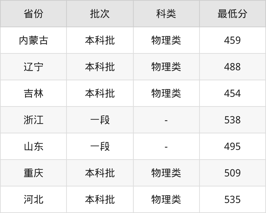 | 批次 | 科类 | 最低分 | 位次 |