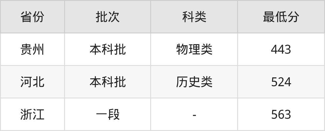 2025年浙江万里学院英语专业在省外招生分数线各不相同,具体如下: