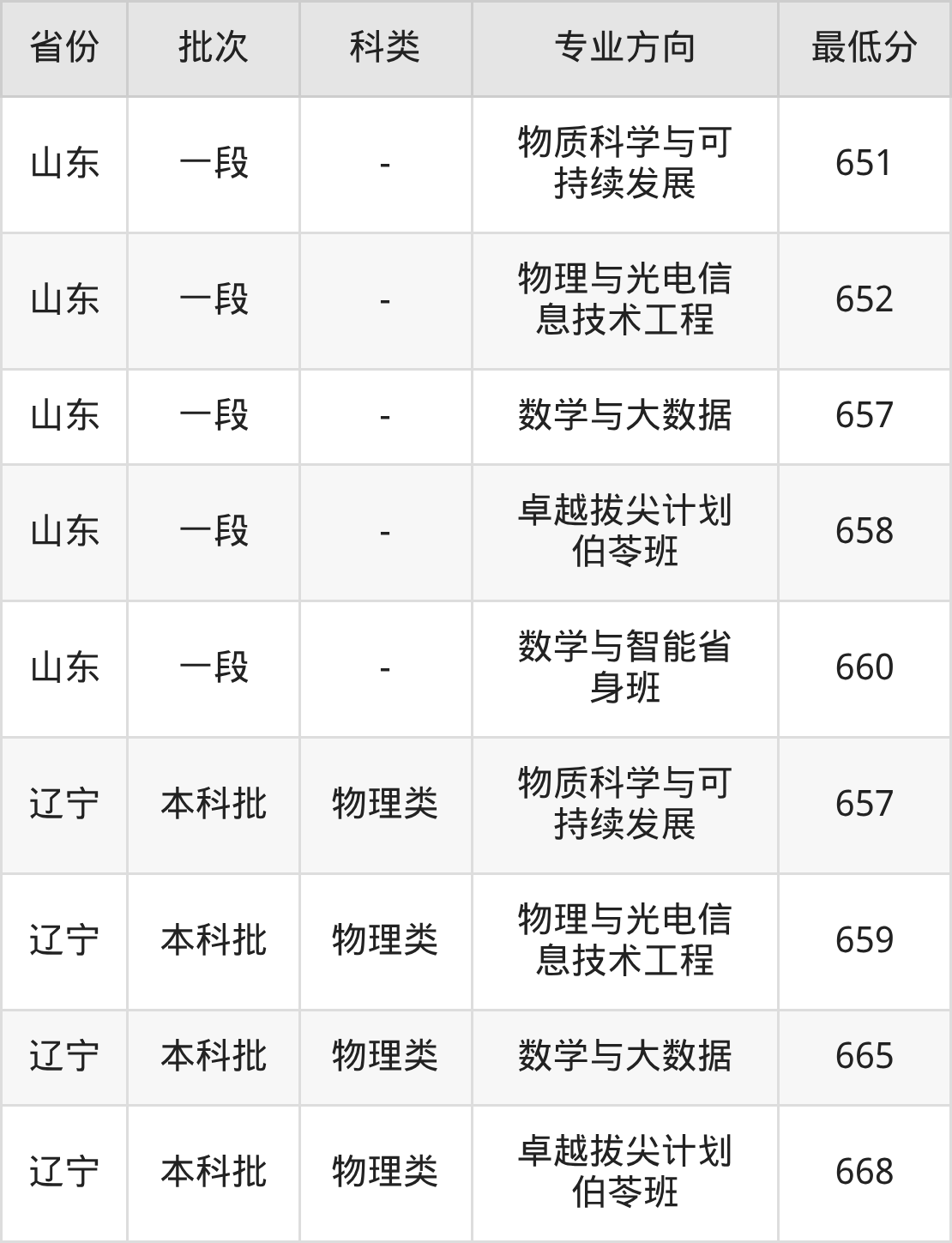 物理类657分(物质科学与可持续发展、位次1679名),物理类659分(物理与光电信息技术工程、位次1496名),物理类665分(数学与大数据、位次1048名),物理类668分(卓越拔尖计划伯苓班、位次852名);