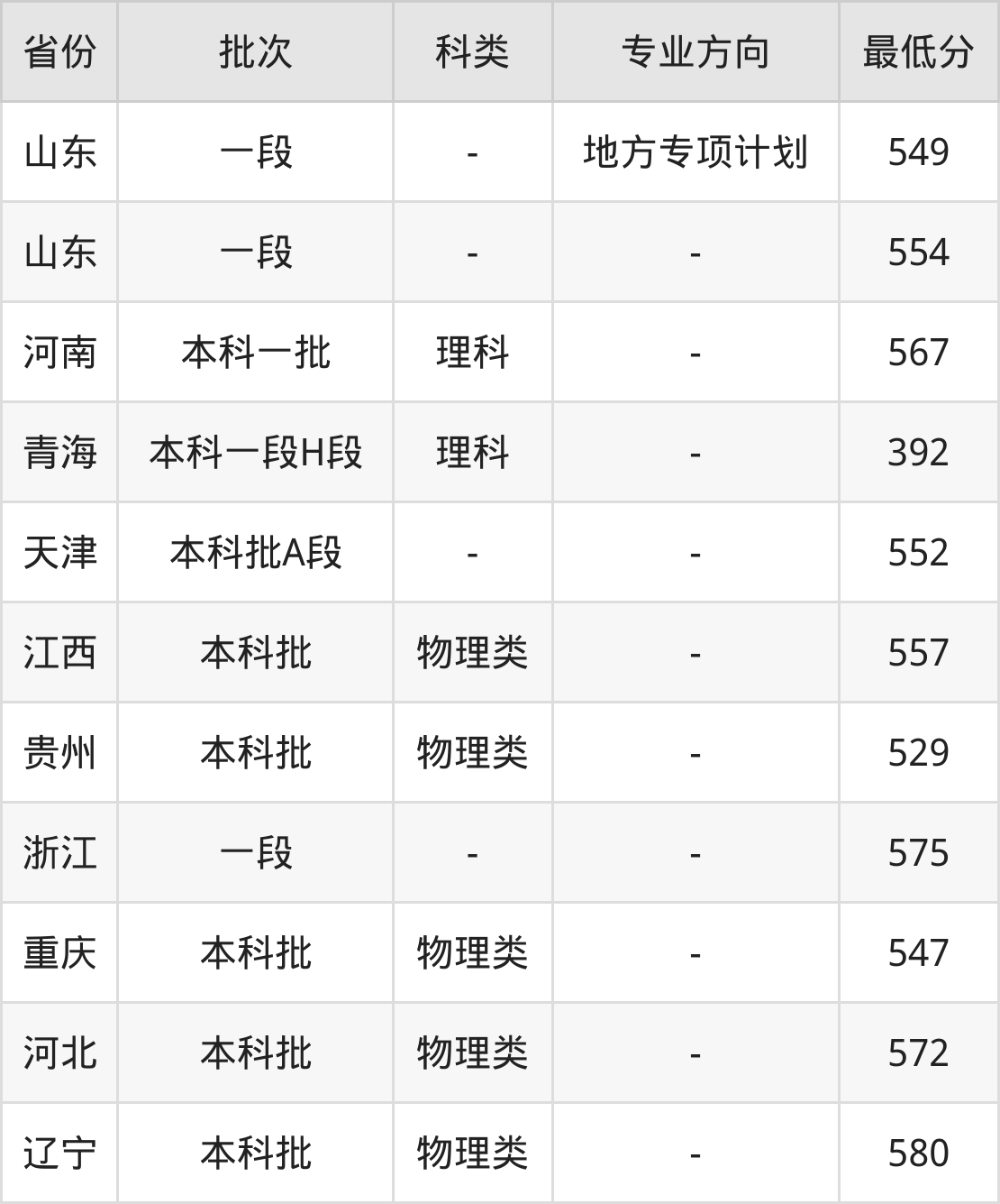 | 批次 | 专业方向 | 最低分 | 位次 |