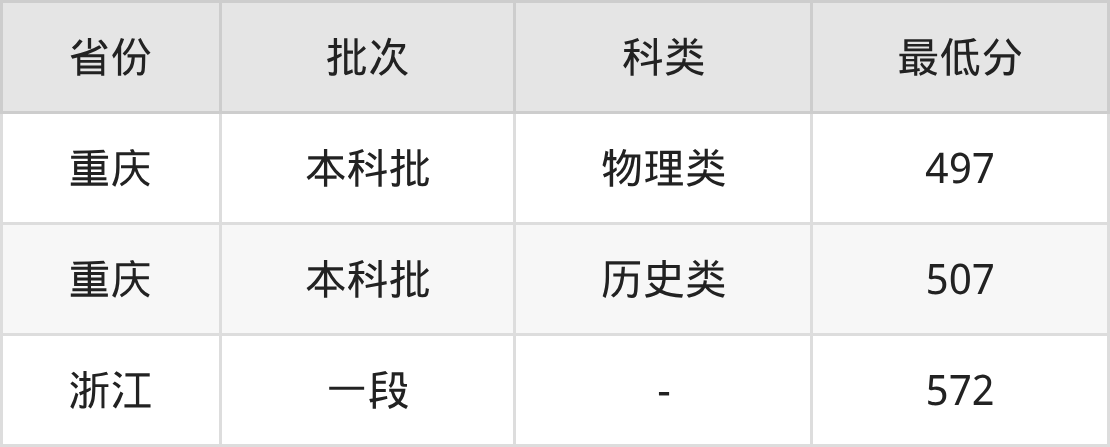 | 批次 | 科类 | 最低分 | 位次 |