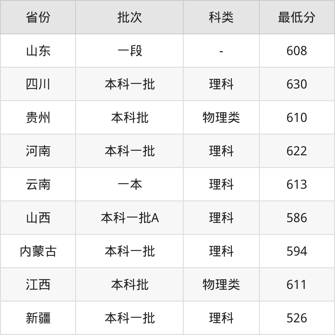 4、云南省(一本)