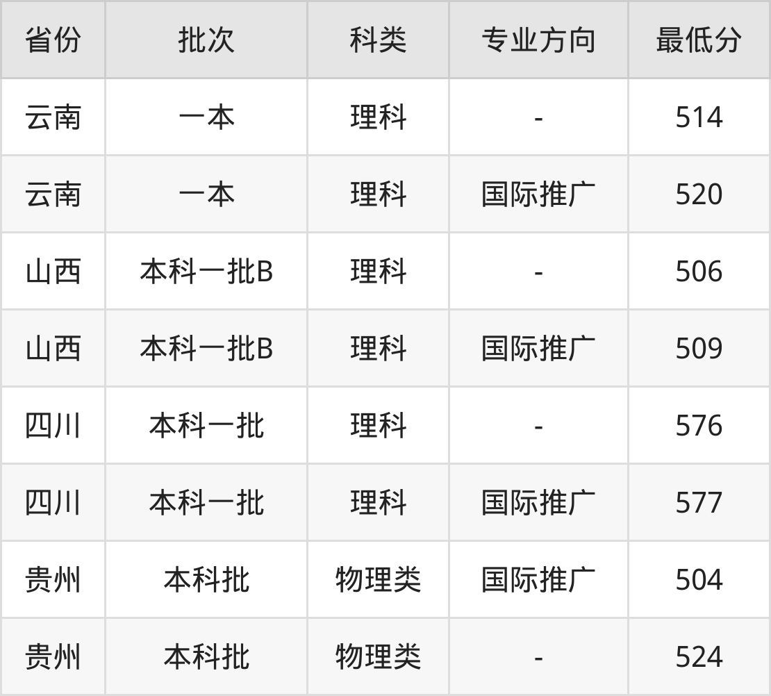 理科514分(位次41879名),理科520分(国际推广、位次38527名);