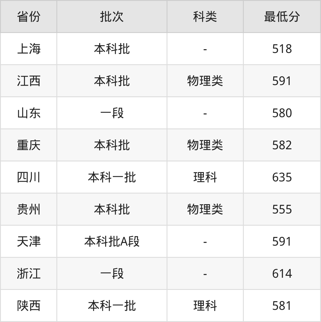 南京医科大学康复治疗学专业录取分数线2024各省汇总显示,省外招生最低分为上海518分、江西591分、陕西581分、天津591分等。更多专业分数详情、选科要求、专业简介等均可在正文查阅。
